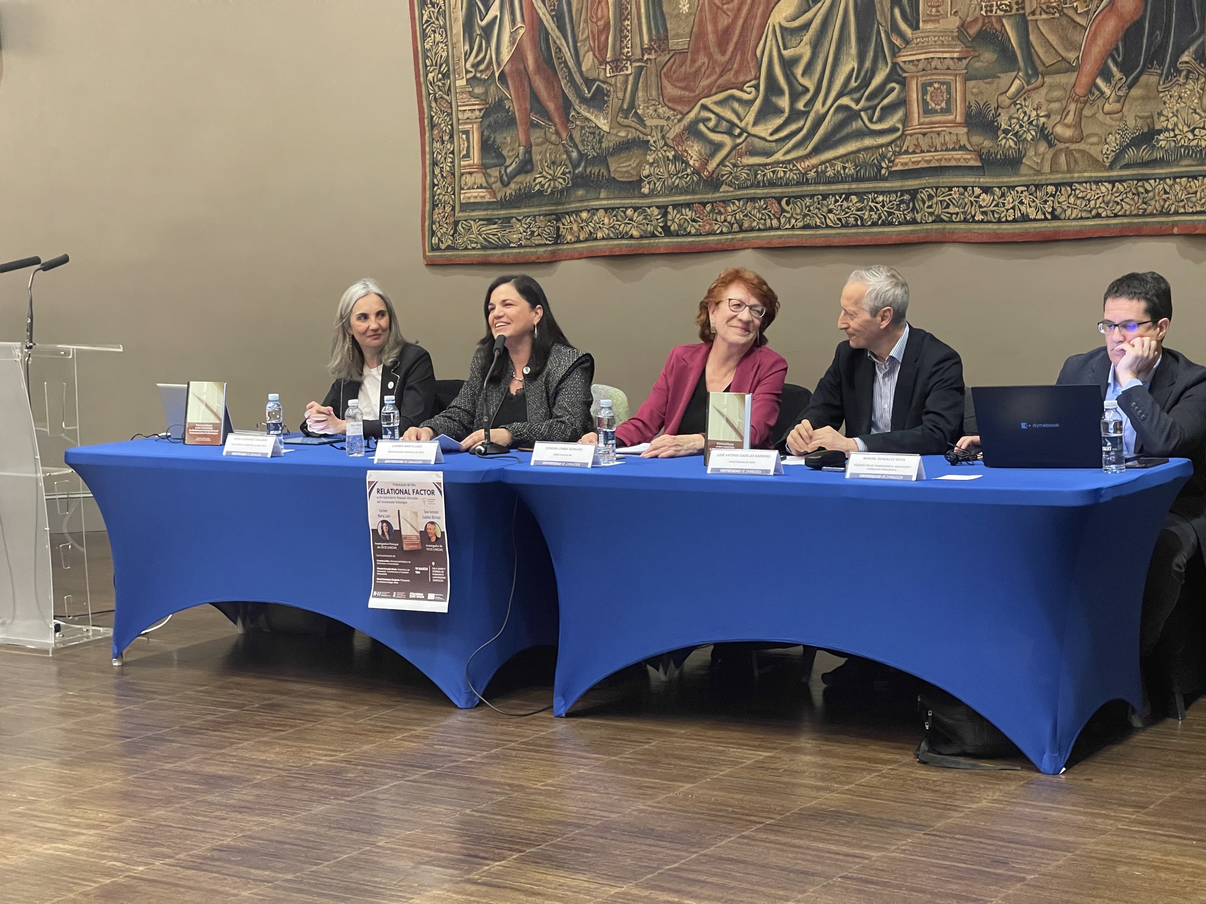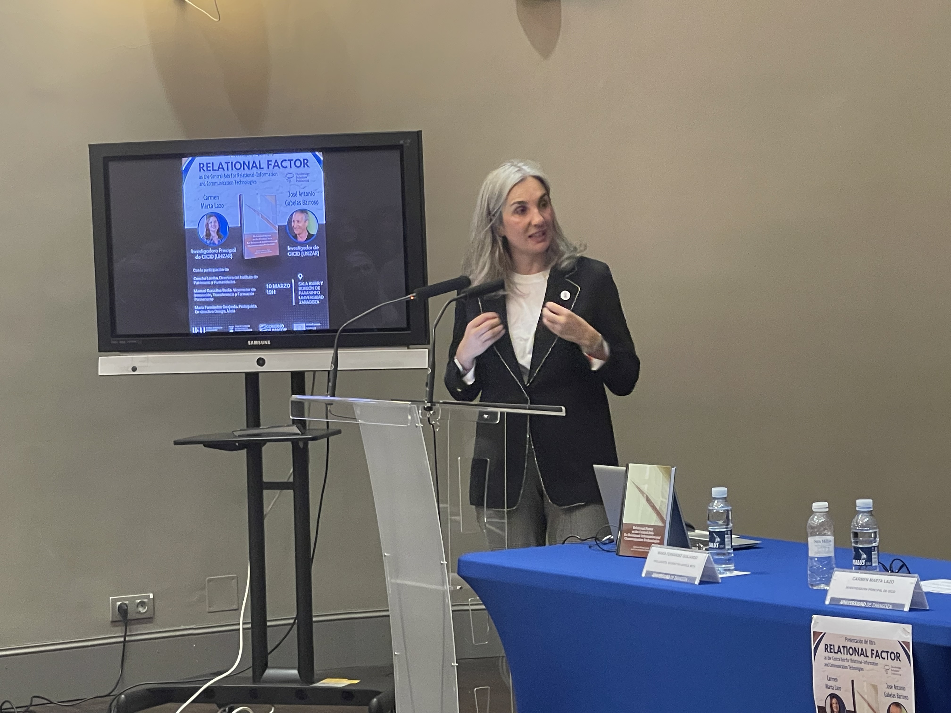 La Sala Amar y Borbón del Paraninfo de la Universidad de Zaragoza ha acogido la presentación del libro Relational Factor as the Central Axis for Relational-Information and Communication Technologies, publicado por Cambridge Scholars Publishing y firmado por Carmen Marta-Lazo y José Antonio Gabelas Barroso, investigadora principal y coordinador del eje 1 “Competencias digitales y educación mediática para dar respuesta a la brecha digital” del Grupo de Investigación en Comunicación e Información Digital (GICID).